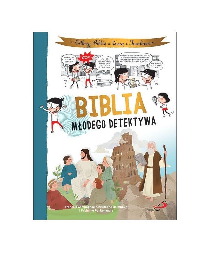 Jak przedstawić Biblię, aby nie wydawała się dzieciom zbyt długa i trudna? Pomogą nam w tym sympatyczni detektywi: Zosia i Tomek. Biblia młodego detektywa zawiera 14 najpopularniejszych historii ze Starego Testamentu i 14 z Nowego Testamentu. Na początku każdego rozdziału znajduje się minikomiks z zabawnymi dialogami, który wprowadza czytelników w tematykę tekstu biblijnego. Obok opowieści biblijnej, napisanej przystępnym językiem, znajduje się fragment oryginalnego tekstu, aby przyzwyczajać najmłodszych do lektury Pisma Świętego. Na marginesach książki Zosia i Tomek wyjaśniają najważniejsze trudne słowa, a także wskazują inne fragmenty biblijne, związane z czytanym tekstem. Ponadto na końcu każdego rozdziału znajdują się strony informacyjne z bardzo ciekawymi wiadomościami i ilustracjami.