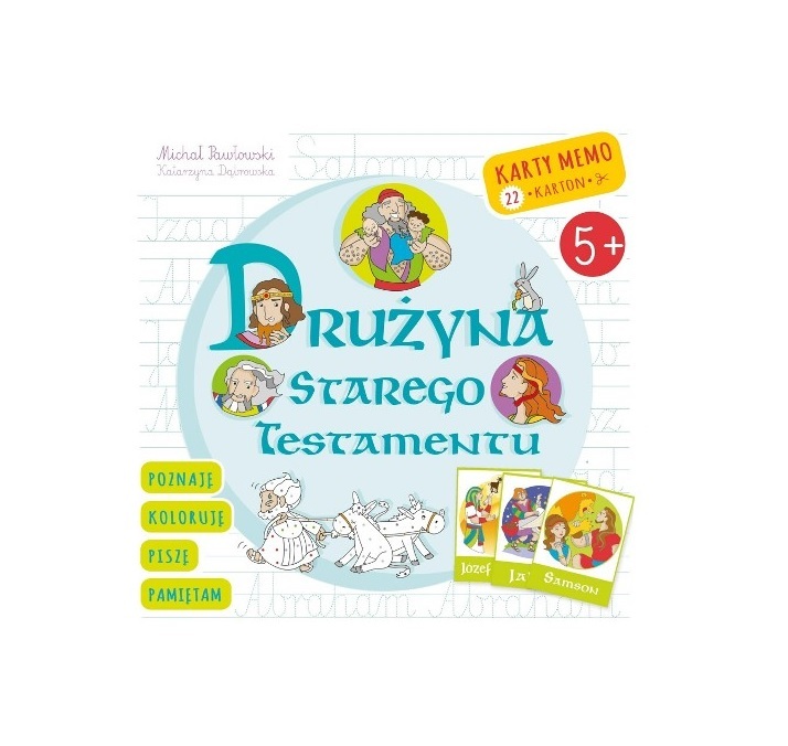 Drużyna Starego Testamentu to sympatyczna książka, dzięki której Twoje dziecko pozna ciekawe historie, będzie mogło ćwiczyć pisanie, kolorować ilustracje, a 22 karty memo pomogą w ćwiczeniu pamięci.