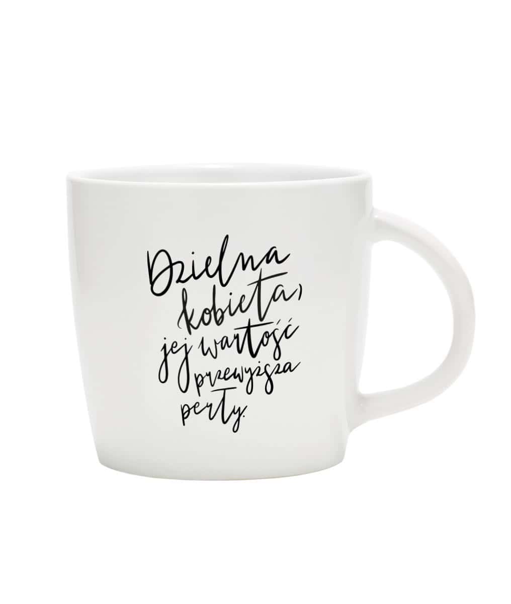 - Inspirujący werset biblijny: „Dzielna kobieta, jej wartość przewyższa perły” (Prz 31,10) jest pięknie kaligrafowany na filiżance, co dodaje jej wyjątkowego charakteru i przypomina o niezwykłej wartości każdej kobiety.