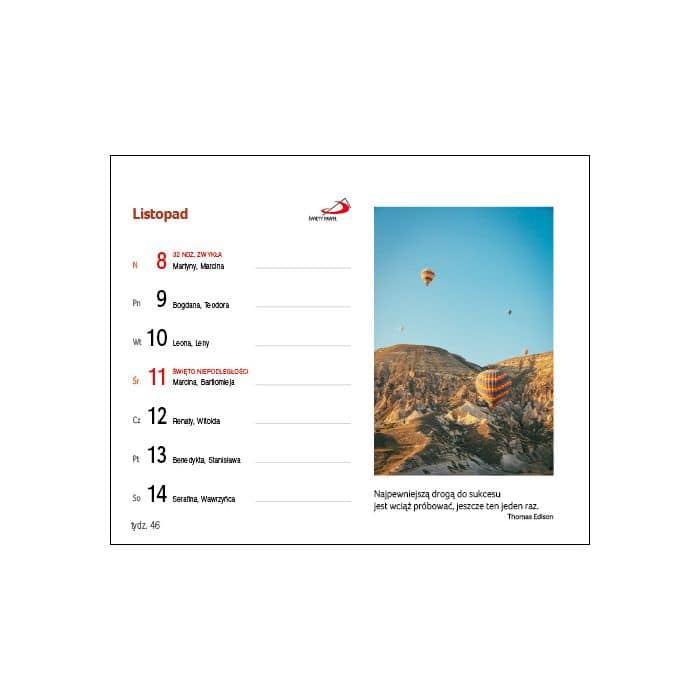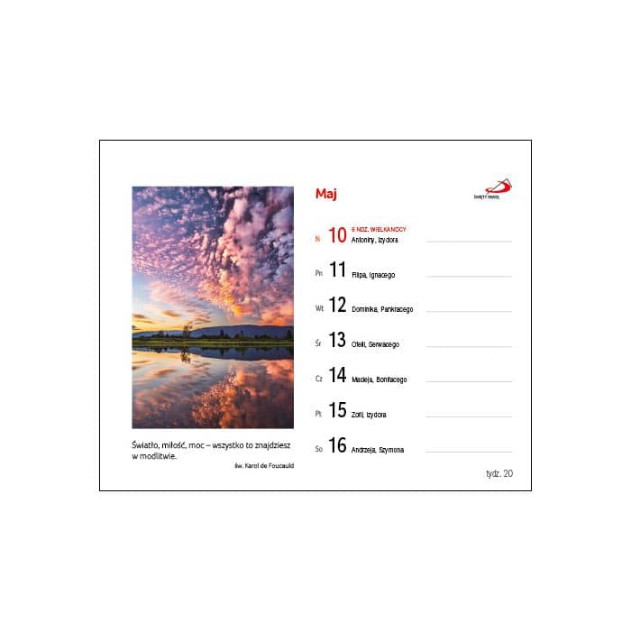 Kalendarz wyróżniają inspirujące i pełne nadziei cytaty, które przypominają, że powodów do radości tak naprawdę nie brakuje, tylko trzeba umieć je dostrzec. To piękne słowa, które pomogą Ci lepiej przeżyć każdy dzień 2026 roku.