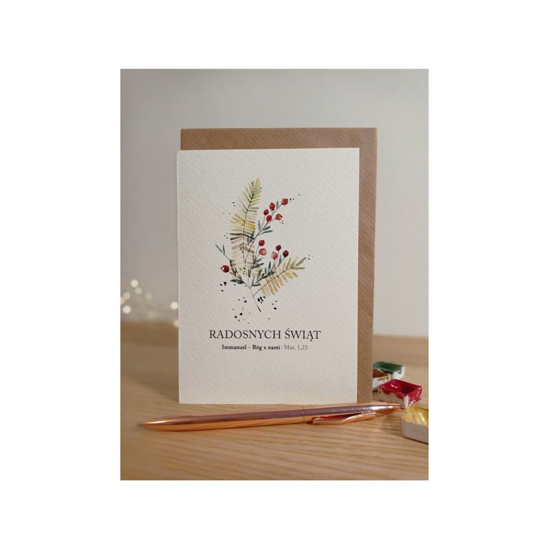 Kartka z okazji Bożego Narodzenia, składana z kopertą.