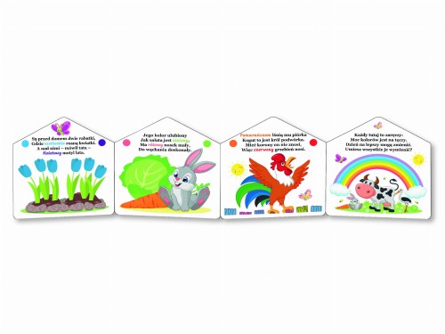 Seria rozkładanych, kolorowych książeczek które nie tylko zabawią malucha ale pomogą w rozwijaniu spostrzegawczości i motoryki małej. Pobudzą wyobraźnię a także ułatwią naukę liter, cyfr czy kolorów.