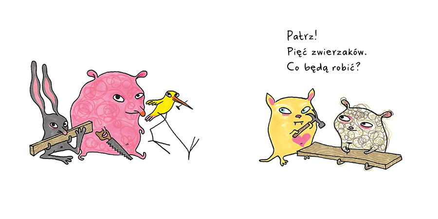 Miśka, Królik, Miświnka, Kocio i Ptaszyna.