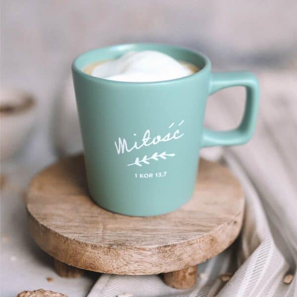 Ten wyjątkowy kubek o pojemności 300ml w spokojnym odcieniu zieleni nie tylko uprzyjemni Ci poranki, ale również przypomni, że miłość jest kluczem do głębokiej harmonii i zrozumienia. Hasło „Miłość” przypomina nam, że kochając i wierząc, tworzymy piękną przestrzeń dla relacji, zarówno z Bogiem, jak i z innymi ludźmi.