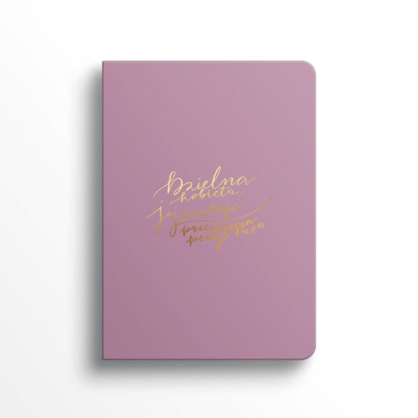 Elegancki notatnik „Dzielna kobieta – jej wartość przewyższa perły” to wyjątkowy produkt dedykowany każdej kobiecie, która pragnie otaczać się inspiracją i Słowem Bożym. Różowa okładka ze złoceniem prezentuje się niezwykle delikatnie i kobieco.