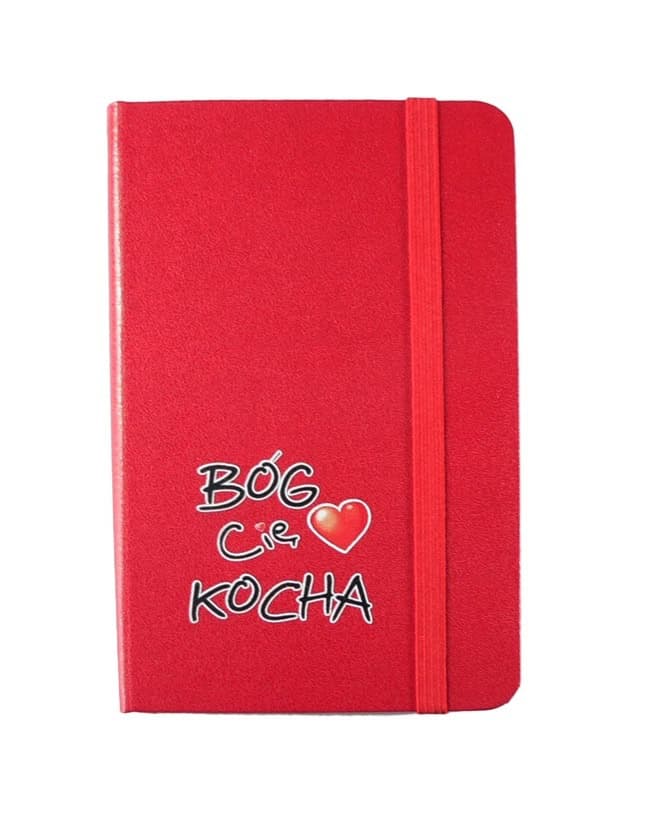 Wzór: Bóg cię kocha. Kolor okładki czerwony.