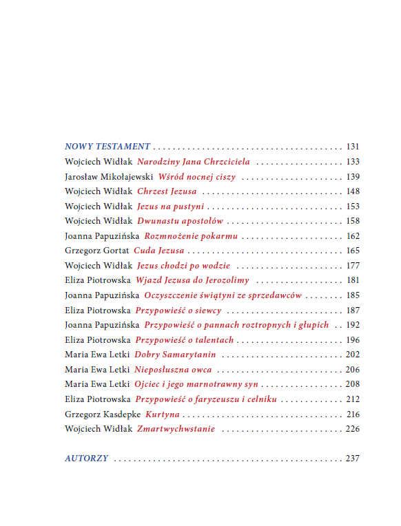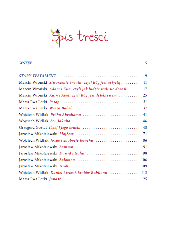 Opowieści biblijne to zbiór historii opisanych przez ośmiu wyjątkowych polskich pisarzy. Każdy z nich – znany i lubiany przez młodszych i starszych czytelników – przedstawia wydarzenia ze Starego i Nowego Testamentu w sposób przystępny, pełen wrażliwości i wyczucia charakterystycznego dla indywidualnego stylu każdego z tych twórców. Wspólnie poznacie historię o stworzeniu świata, wygnaniu z raju, potopie czy narodzinach Jezusa.