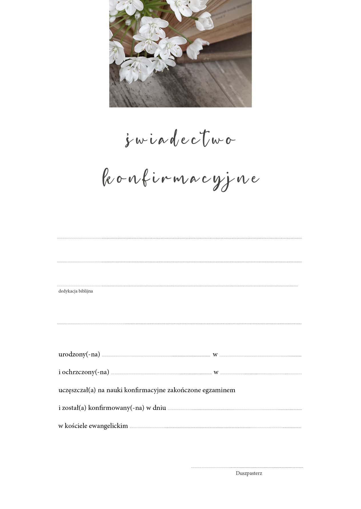 Świadectwo konfirmacyjne – białe kwiaty