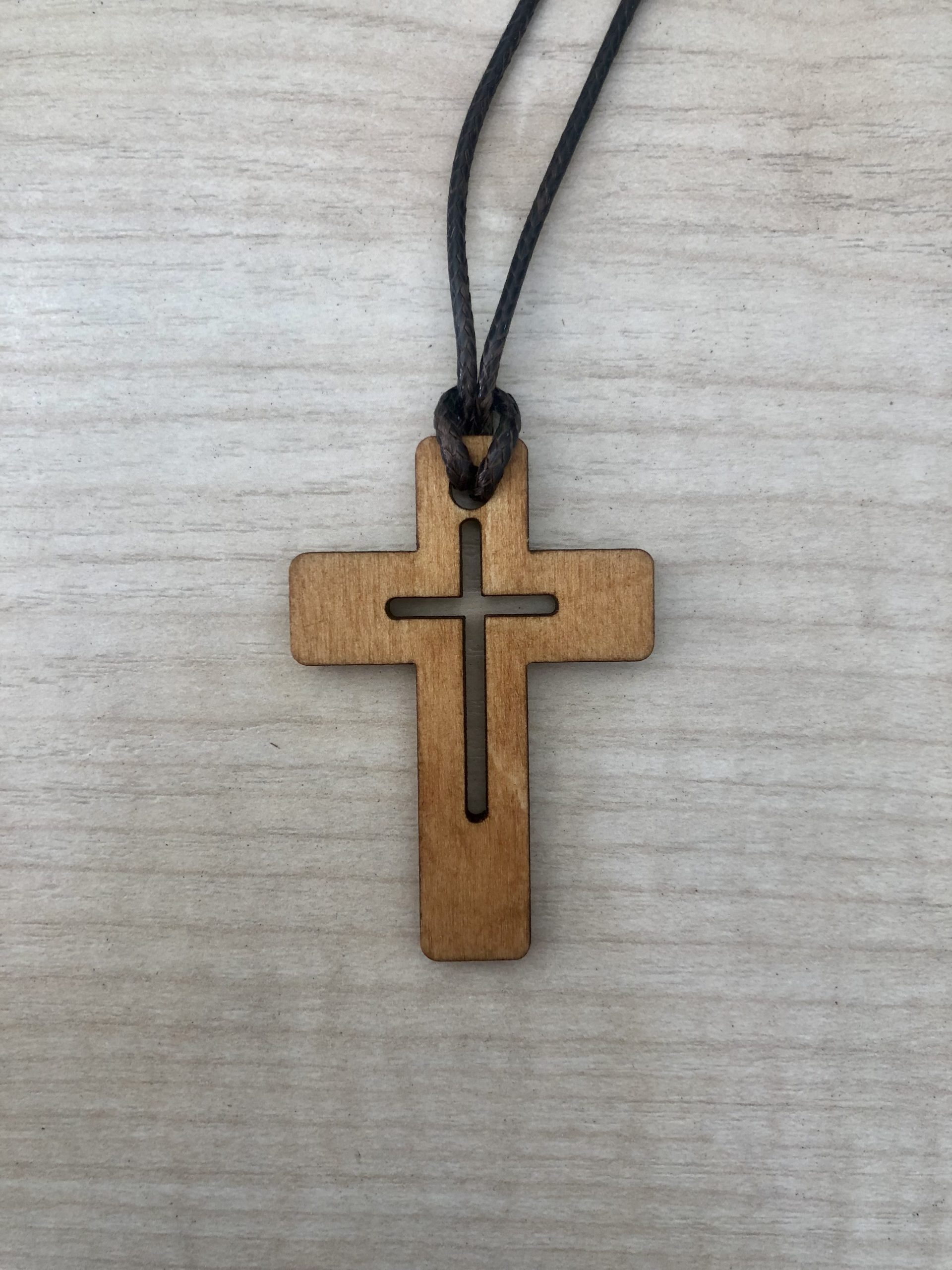 Zawieszka na szyję wykonana z drewna o grubości 3 mm i wycinana laserem. W zestawie ze sznurkiem jubilerskim w kolorze ciemnego brązu.