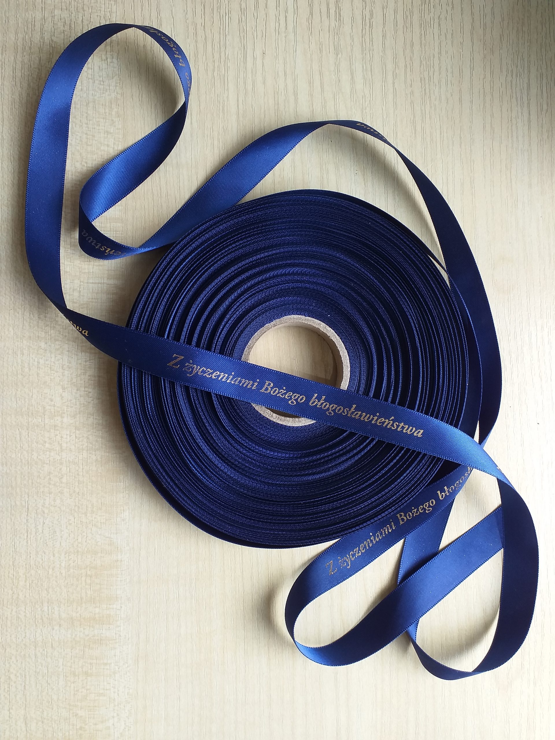 Wstążka satynowa z nadrukiem – Z życzeniami Bożego błogosławieństwa.
