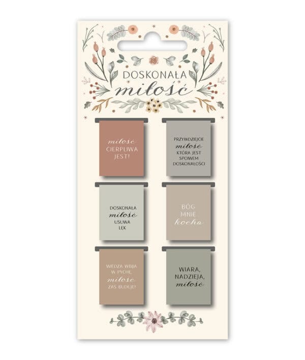Odkryj piękno i głębię doskonałej miłości, jaką oferuje nam Bóg, dzięki naszym magnetycznym zakładkom z wersetami biblijnymi. Ten zestaw sześciu zakładek jest nie tylko praktycznym dodatkiem do Twojej Biblii czy książek, ale również codziennym przypomnieniem o mocy miłości. Każda zakładka została zaprojektowana z pięknym, kwiatowym wzorem, podkreślającym wyjątkowość i delikatność Bożej miłości. Idealne dla każdego, kto pragnie pogłębiać swoje życie duchowe i otaczać się inspirującymi słowami z Pisma Świętego.